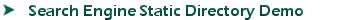 Live demo the search engine as a static directory using html pages generated by the software. The static demo or directory still uses live dynamic search results when a surfer conducts a search. Static directory loads pages faster in normal categories browse mode and all other html static generated pages.